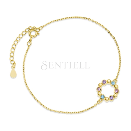 Srebrna pozłacana bransoletka pr.925 kwiatek z cyrkoniami