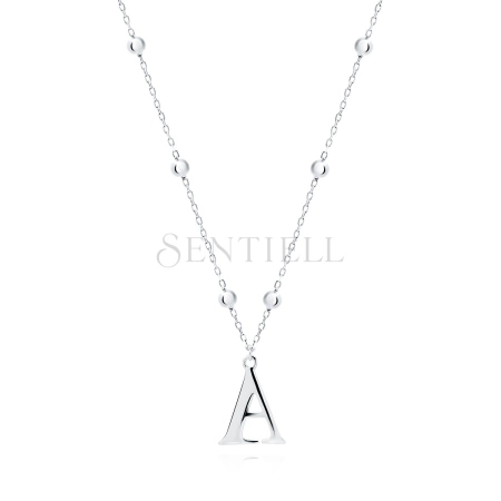 Srebrny naszyjnik pr.925 literka A na łańcuszku z kuleczkami