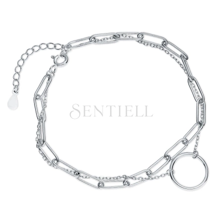 Srebrna (925) bransoletka z podwójnym łańcuszkiem i kółkiem