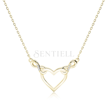Srebrny pozłacany naszyjnik pr.925 - serce i nieskończoności z białymi cyrkoniami