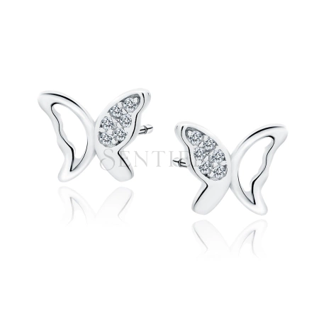 Srebrne kolczyki pr.925 motylki z białymi cyrkoniami