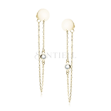 Srebrne pozłacane kolczyki pr.925 z kołem i białą cyrkonią na łańcuszku