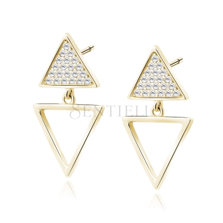 Srebrne pozłacane kolczyki pr.925 trójkąty z białymi cyrkoniami