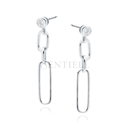 Srebrne kolczyki pr.925 - trzy ogniwka łańcuszka z białą cyrkonią