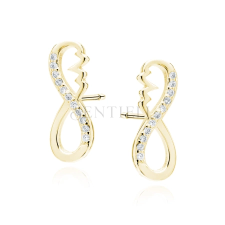 Srebrne pozłacane kolczyki pr.925 - nieskończoność z pulsem i białymi cyrkoniami