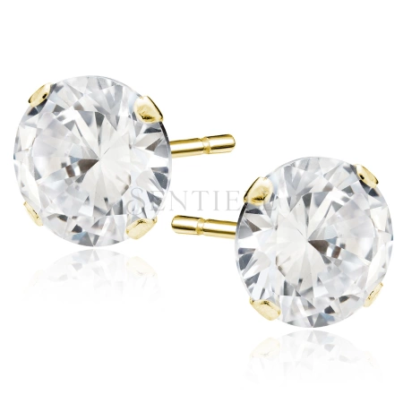Srebrne pozłacane kolczyki pr.925 Biała cyrkonia okrągła średnica 10mm