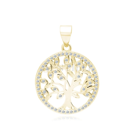 Srebrna pozłacana zawieszka pr.925 z białymi cyrkoniami - drzewo szczęścia
