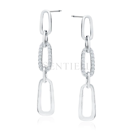 Srebrne kolczyki pr. 925 ogniwka łańcuszka z białymi cyrkoniami