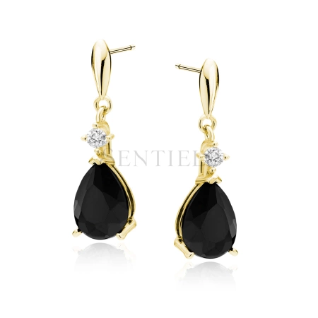 Srebrne pr. 925 pozłacane kolczyki z czarną cyrkonią - łezka