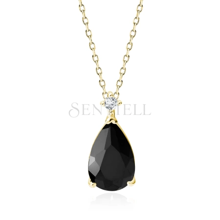 Srebrny pozłacany naszyjnik pr.925 z czarną cyrkonią - łezka