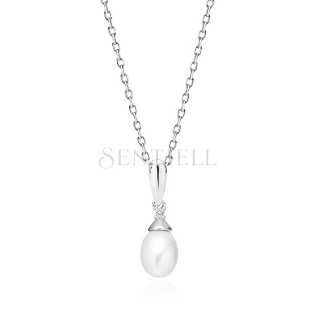 Srebrny naszyjnik pr.925 z perłą i białą cyrkonią