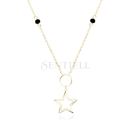 Srebrny pozłacany naszyjnik pr.925 gwiazdka i czarne spinele