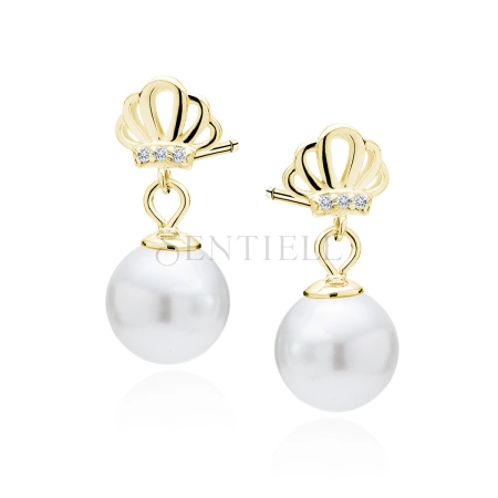 Srebrne pozłacane kolczyki pr. 925 perły z białą cyrkonią