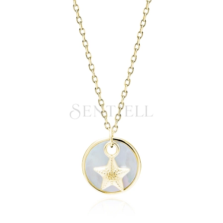 Srebrny pozłacany naszyjnik pr.925 gwiazda w kole z masą perłową