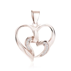 Srebrna pozłacana zawieszka pr.925 serce ozdobione dwoma cyrkoniami
