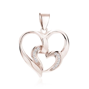 Srebrny pozłacany różowym złotem naszyjnik pr.925 - serce z cyrkoniami
