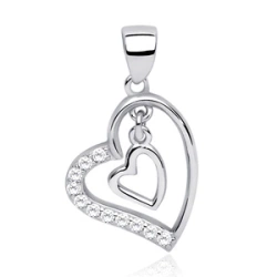 Srebrna zawieszka pr.925 serce z cyrkoniami serce w środku