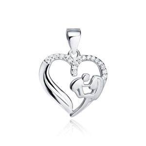 Srebrna zawieszka pr.925 matka z dzieckiem w sercu z białymi cyrkoniami