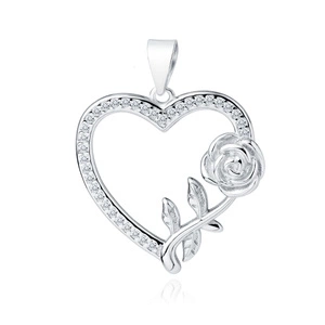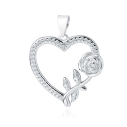 Srebrna zawieszka pr.925 serce z różyczką i białymi cyrkoniami