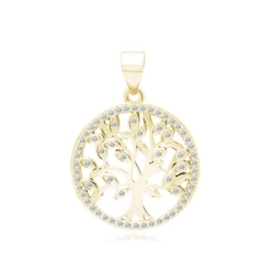 Srebrna pozłacana zawieszka pr.925 z białymi cyrkoniami - drzewo szczęścia