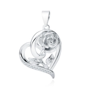 Srebrna zawieszka pr.925 serce z różyczką i białymi cyrkoniami