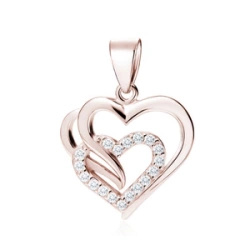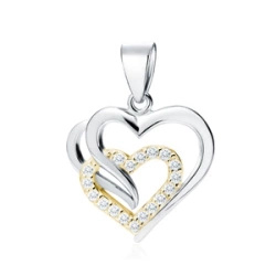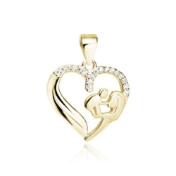 Srebrna pozłacana zawieszka pr.925 matka z dzieckiem w sercu z białymi cyrkoniami